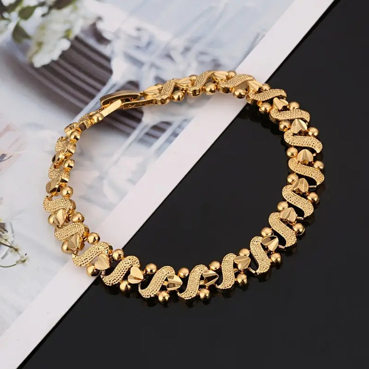 Elegant 24K Golden Plated Heart Charm Bracelet, Boho Style Alloy Jewelry for Women, Daily Wear, African Dubai Inspired Gift, All Season Accessory