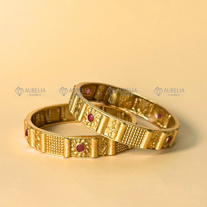 1 Piar of these elegant gold-plated bangles are adorned with delicate pearls and emerald green stones, creating a sophisticated floral pattern. The intricate detailing and contrasting colors make them perfect for adding a touch of glamour to any occasion, from weddings to parties, or even for everyday wear. They are made from durable, high-quality materials and are designed to last, ensuring lasting beauty and elegance.¬¨‚Äâ€