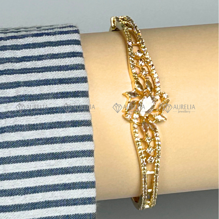 This 1 Pcs exquisite bracelet features a gold/silver-tone band intricately adorned with shimmering clear stones. A central, square-cut emerald-green gemstone adds a pop of color and elegance. The design includes floral accents and geometric shapes, making it a versatile piece suitable for both formal and casual occasions. The bracelet is secured with a clasp mechanism, ensuring a comfortable and secure fit.