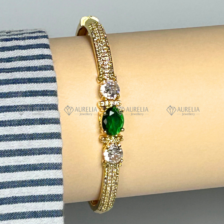 This 1 Pcs exquisite bracelet features a gold/silver-tone band intricately adorned with shimmering clear stones. A central, square-cut emerald-green gemstone adds a pop of color and elegance. The design includes floral accents and geometric shapes, making it a versatile piece suitable for both formal and casual occasions. The bracelet is secured with a clasp mechanism, ensuring a comfortable and secure fit.