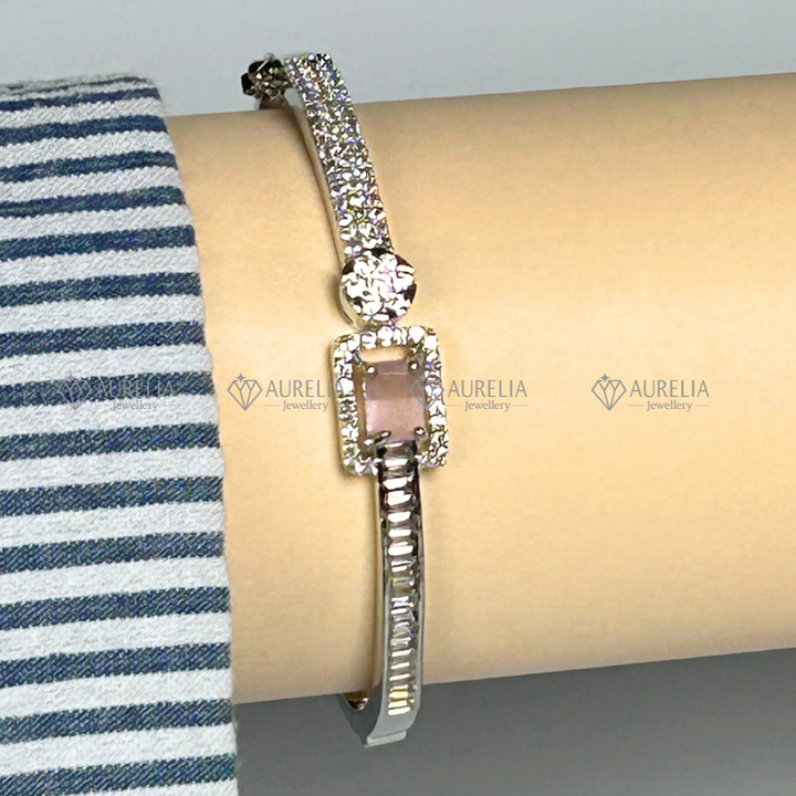 This 1 Pcs exquisite bracelet features a gold/silver-tone band intricately adorned with shimmering clear stones. A central, square-cut emerald-green gemstone adds a pop of color and elegance. The design includes floral accents and geometric shapes, making it a versatile piece suitable for both formal and casual occasions. The bracelet is secured with a clasp mechanism, ensuring a comfortable and secure fit.