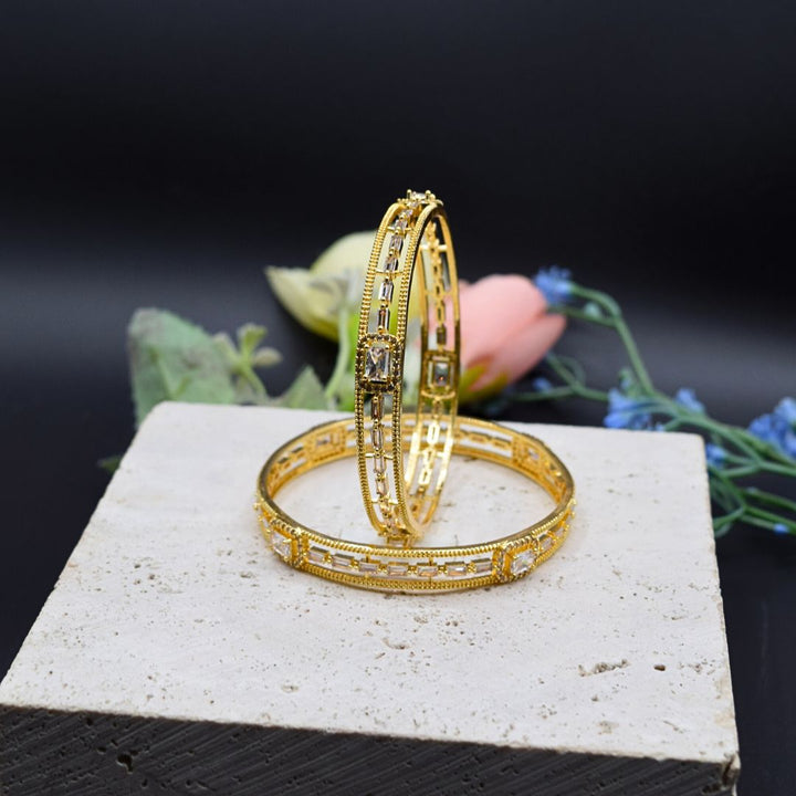 Add dazzling sparkle to your wrist with our beautiful Golden Bangle! It shines bright with 1-karat equivalent zircons and features an intricate design. Perfect for weddings, parties, or any special celebration.