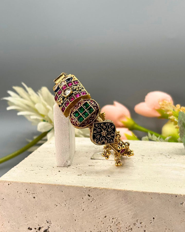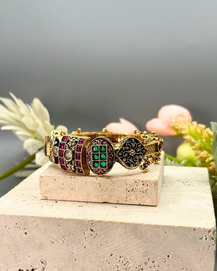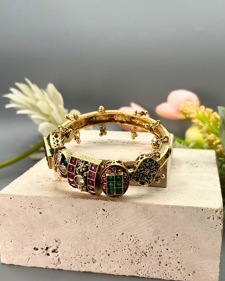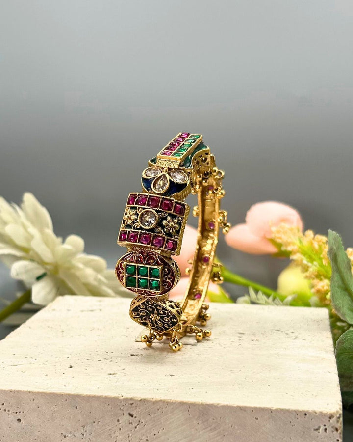 1 Pcs Add sparkle to your look with our beautiful Kundan Bangle! This traditional bracelet is perfect for weddings, parties, or any festive event. Handmade with classic designs, it adds a touch of elegance to your style