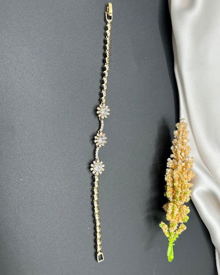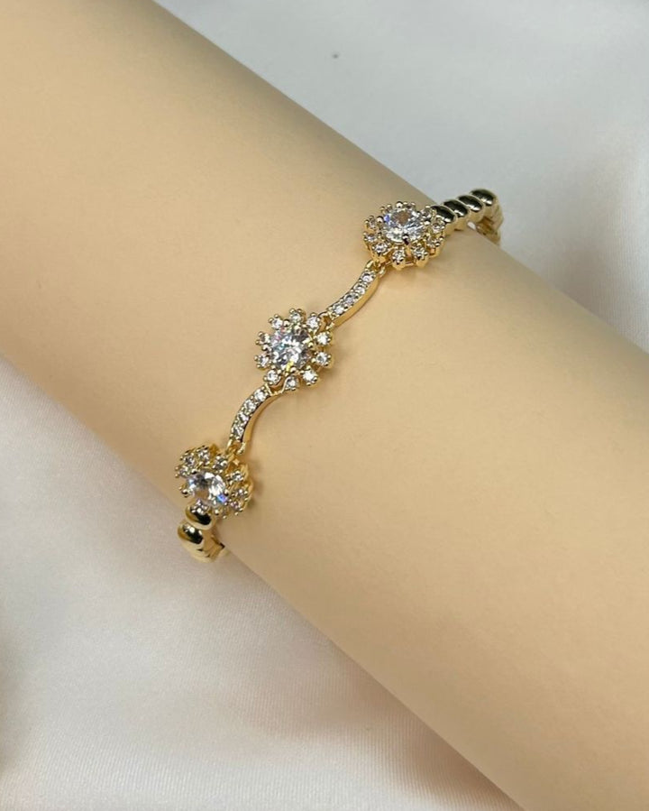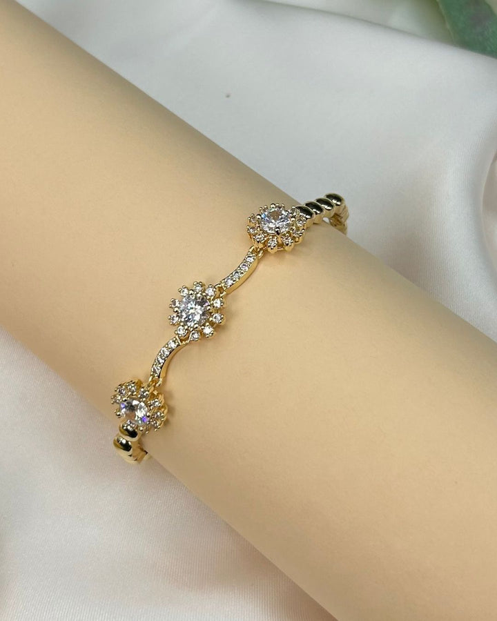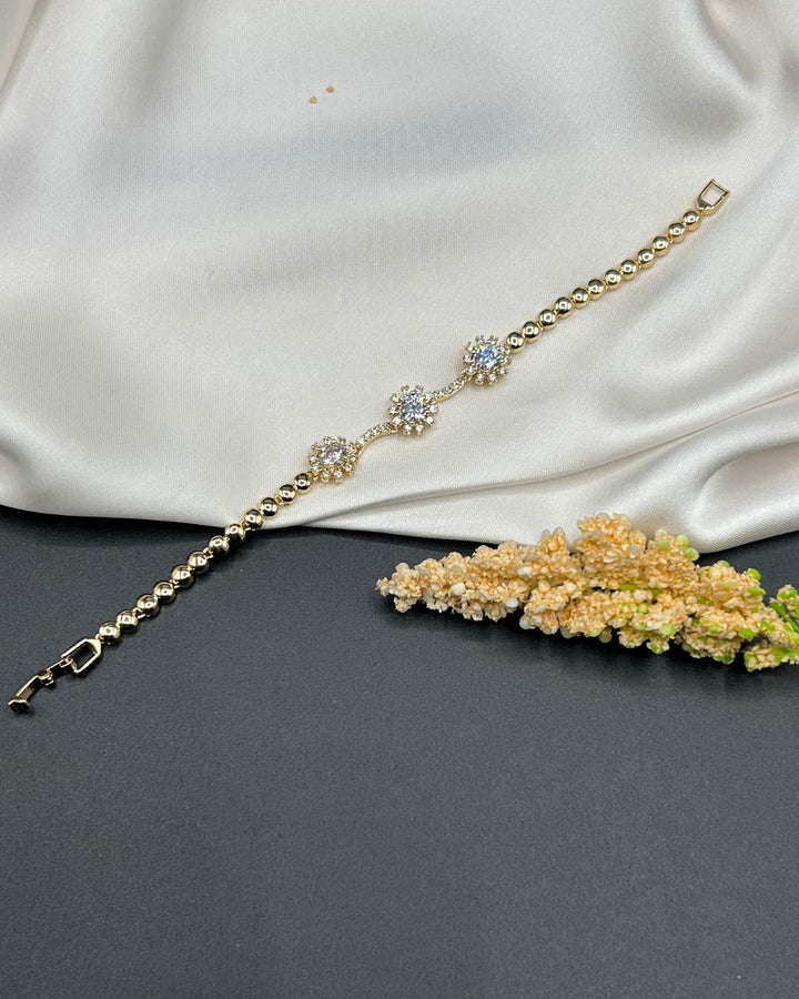 Indulge in the enchanting beauty of this adjustable women's bracelet adorned with intricate stone work. Crafted from high-quality metal in a radiant white color, this piece exudes a delicate and stunning charm that effortlessly elevates any ensemble. Complete your look with this timeless accessory from Aurelia.Pk.