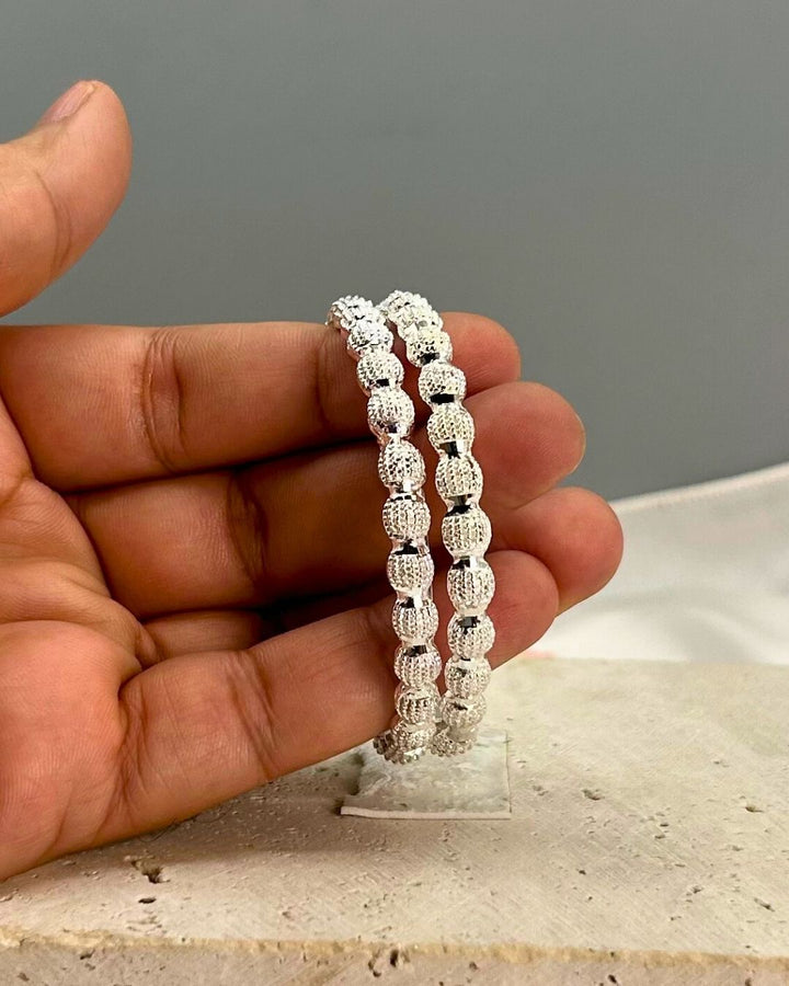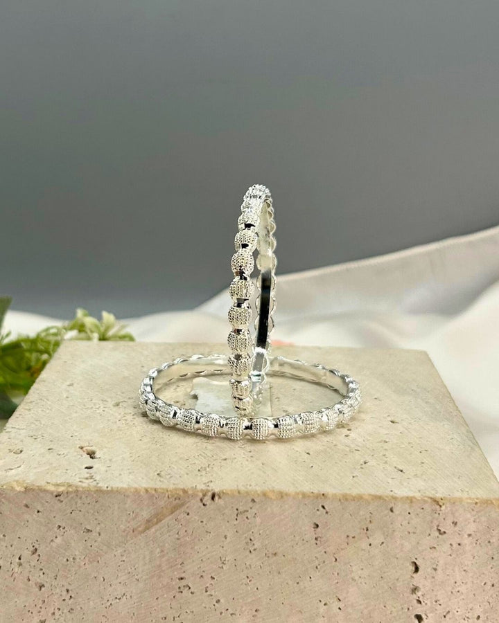 These stunning bangles from Aurelia.Pk are a must-have accessory for any fashion-forward woman. Crafted from metal with embossed detailing, these 2-piece set in white color is the perfect blend of elegance and style. Elevate your look with these bold and timeless bangles.