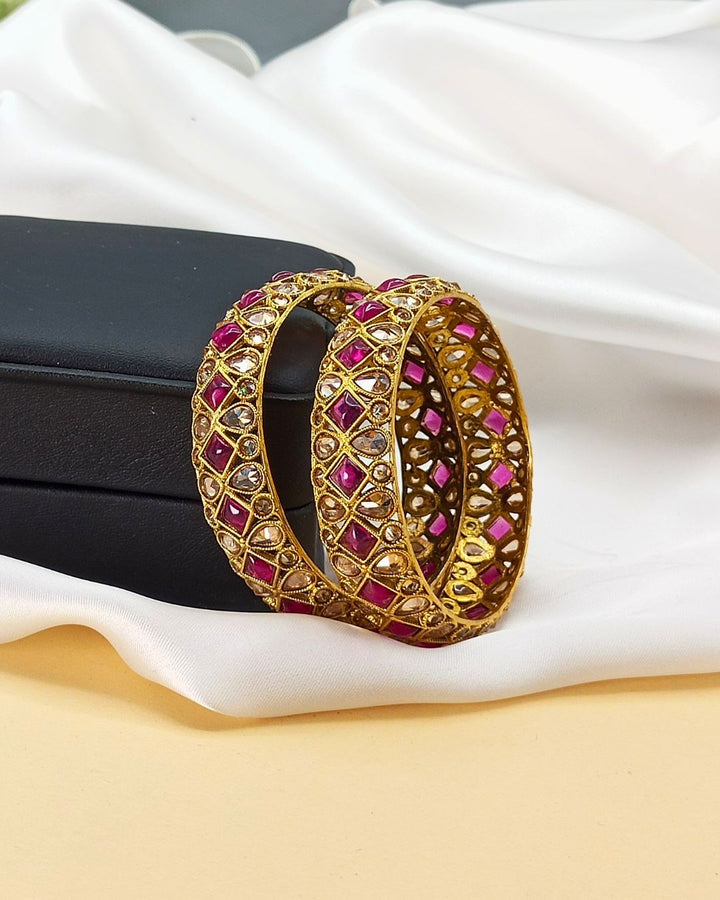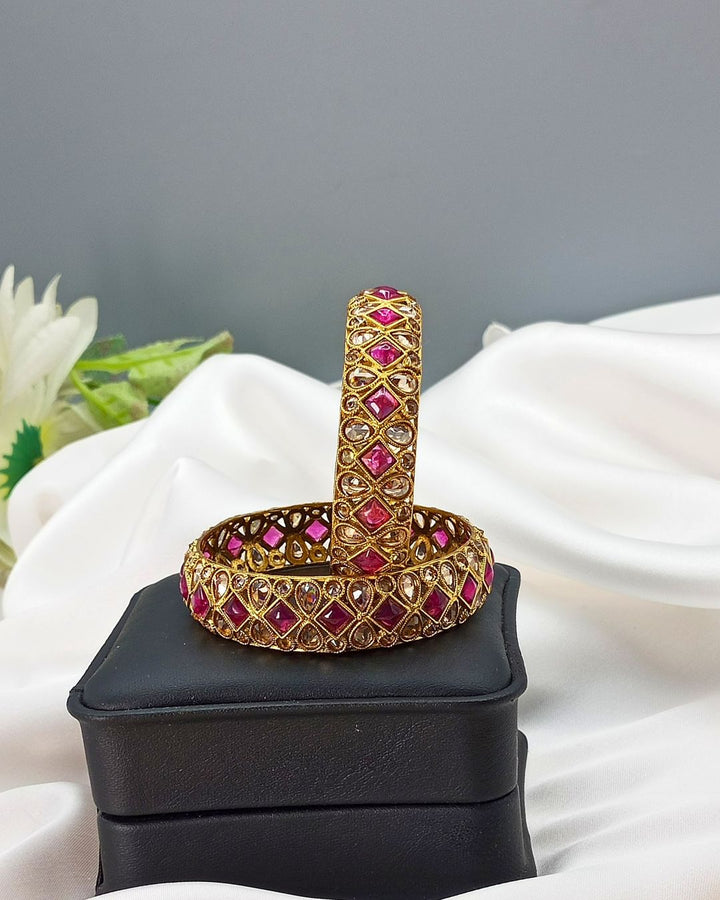 Elevate your wrist game with this exquisite 2 Piece bangle set from Aurelia.Pk. Crafted from sleek metal and adorned with intricate stone work in a luminous pearl white hue, these bangles exude a sophisticated charm. Perfect for adding a touch of elegance to any outfit, these pieces are a must-have for every fashion-forward woman.