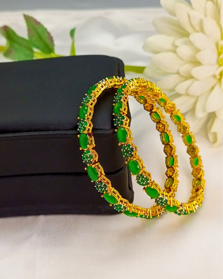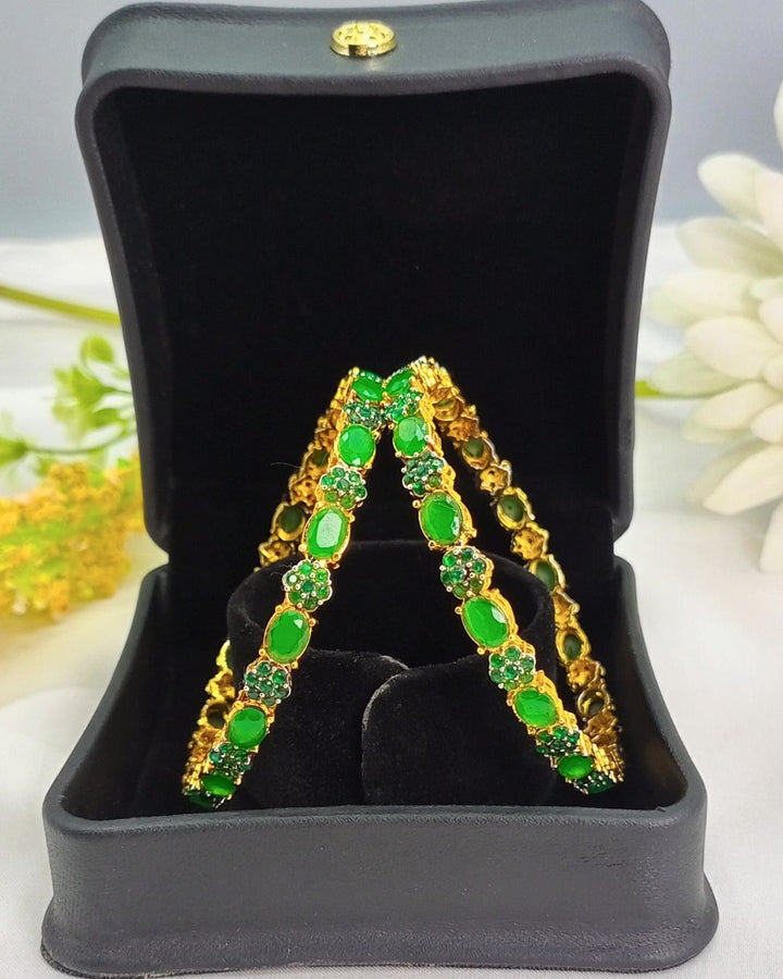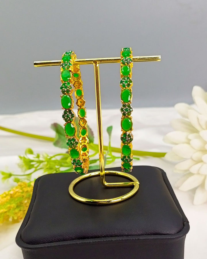 These stunning 2-piece bangles from Aurelia.Pk are the epitome of elegance and style. Crafted from metal with intricate stone work in a vibrant green hue, these bangles add a pop of color to any outfit. Elevate your accessory game with these must-have pieces that exude sophistication and charm.