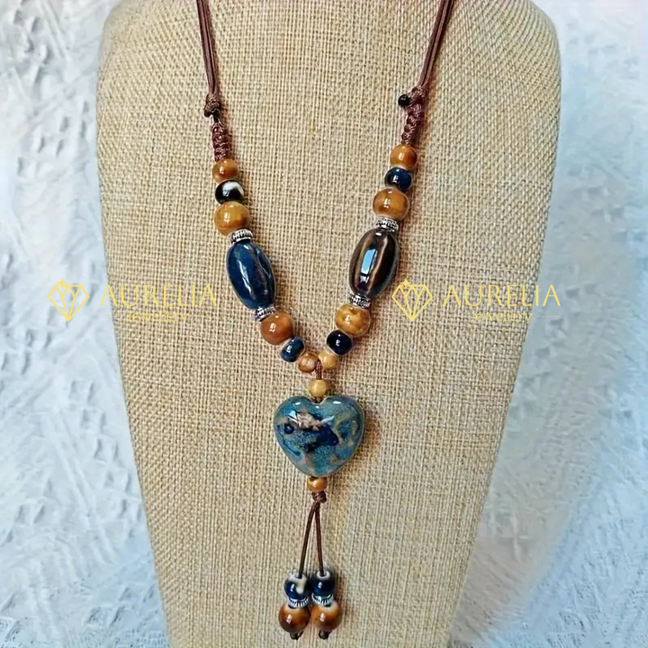 Ceramic Necklace for Women - Handcrafted High-Temperature Kiln-Fired Beads, Colorful Fashion Sweater Chain with Natural Stones, July Birthstone, Gift Idea for Vacation, Mardi Gras Jewelry Accessory¬¨‚Äâ€