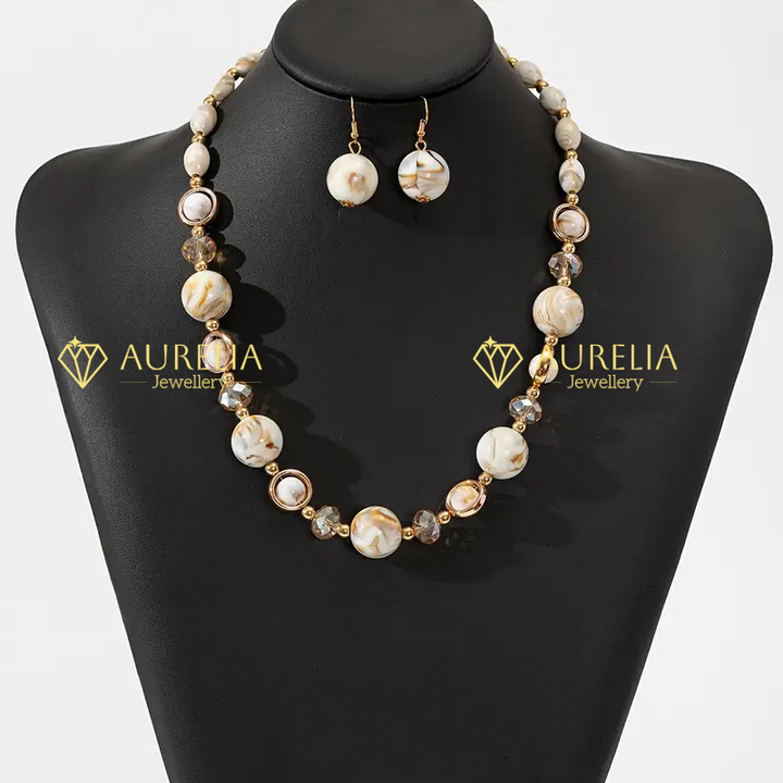 Chic Acrylic Beaded Necklace and Earrings Set - UV Plated, Party-Ready Fashion Accessories for Girls