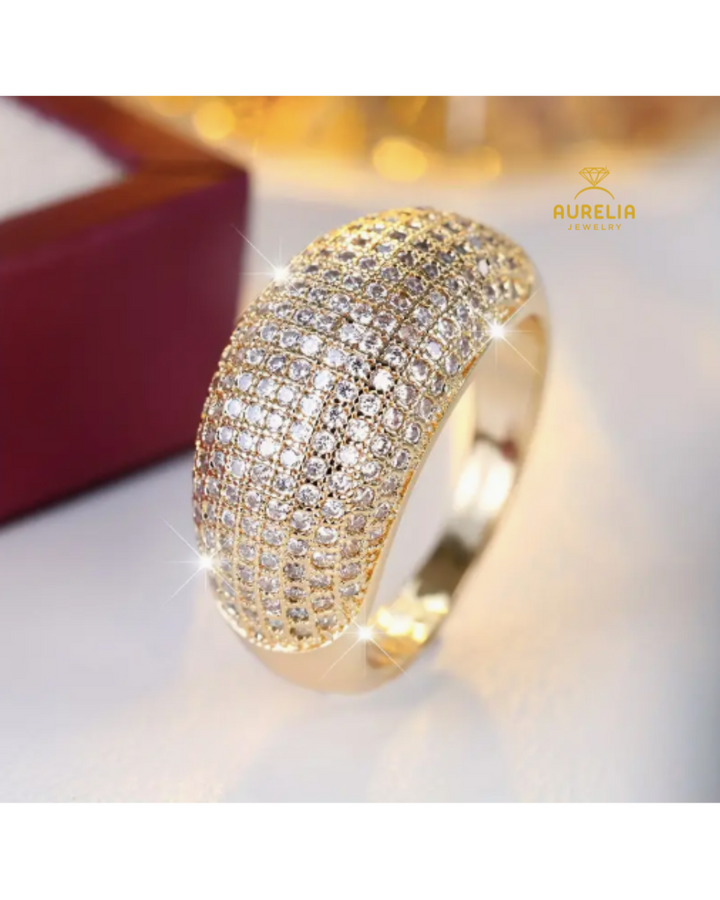 Elegant Copper Zirconia Pave Ring for Women, Daily & Party Statement Jewelry, All-Season Fashion Accessory, Luxurious Temperament Wide Band Ring - 1 Piece
