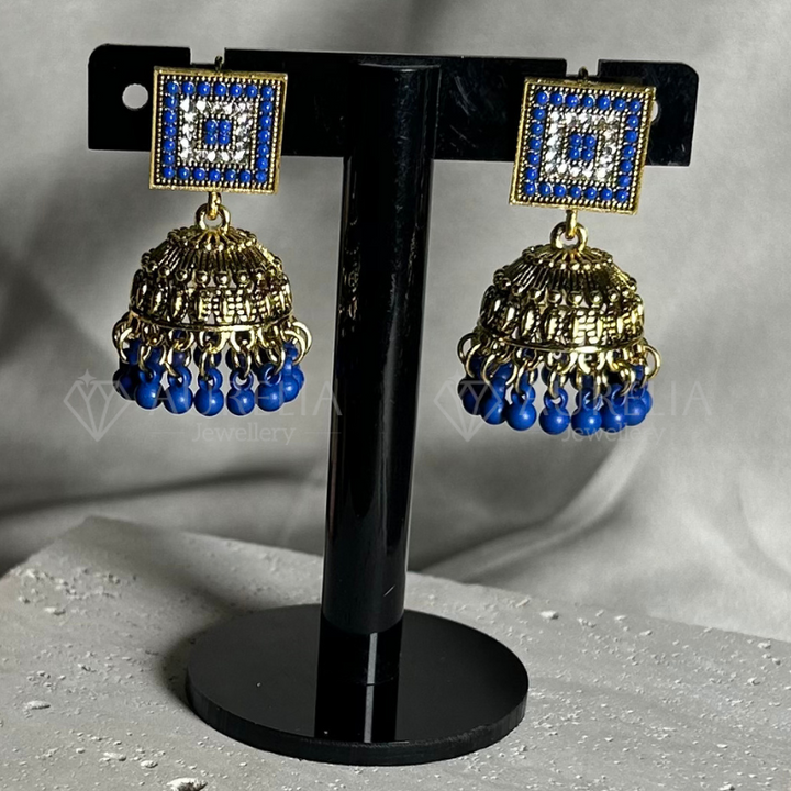 1 Pair Of Vintage Jhumka Glamorous Inlaid Glass Square Earrings Tassel Drop Earrings Exquisite Jewelry For Women's Daily, Festive, Wedding And Party