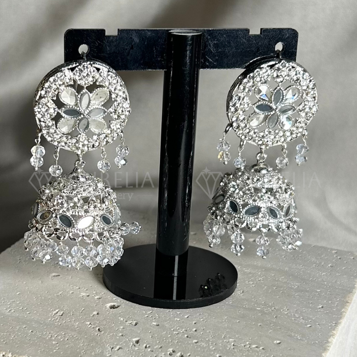 1 Pair Of Vintage Jhumka Glamorous Inlaid Glass Square Earrings Tassel Drop Earrings Exquisite Jewelry For Women's Daily, Festive, Wedding And Party
