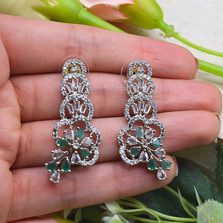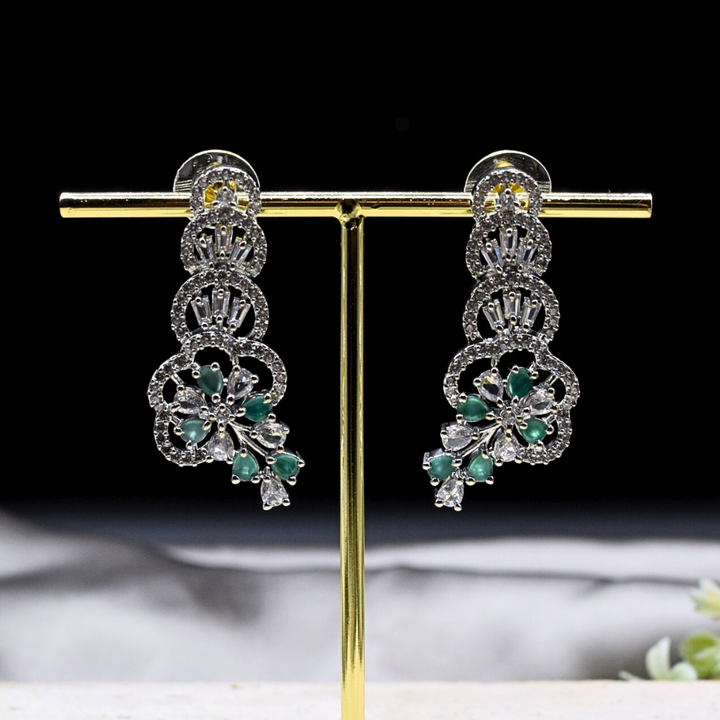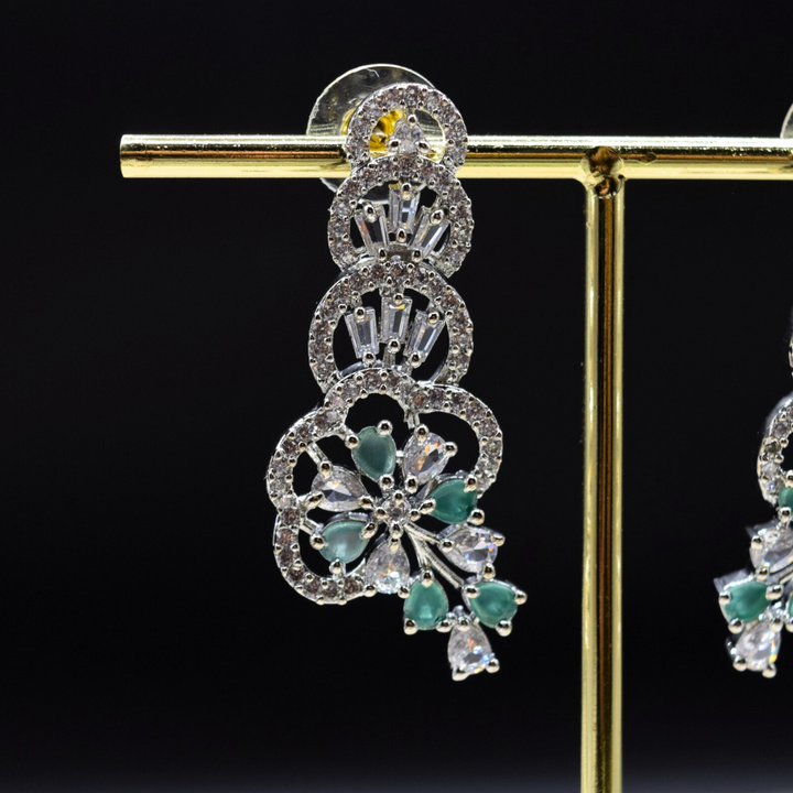 Add amazing sparkle with our beautiful Silver Earrings! They feature a dazzling 1-carat blue American Zircon stone and smaller shiny clear stones. These elegant drop earrings are perfect for parties, weddings, or any special event. They will make you stand out