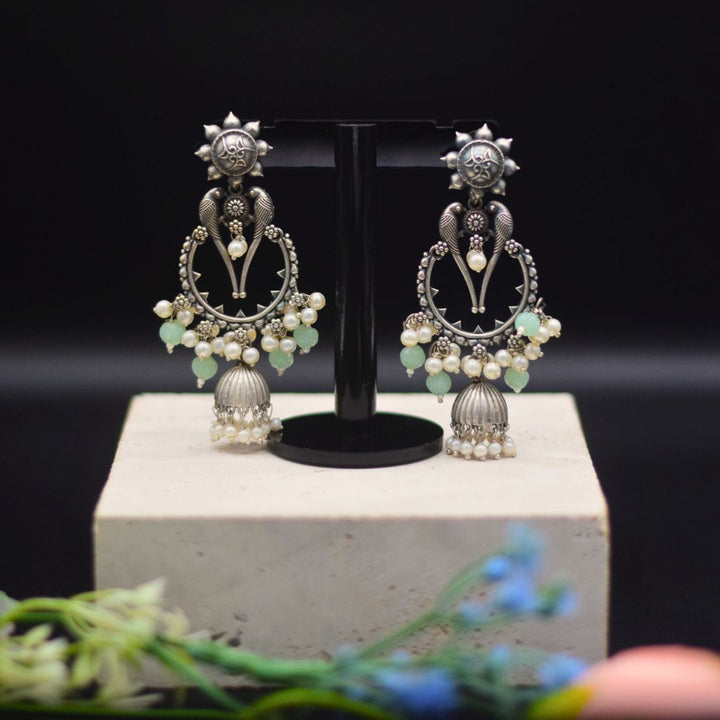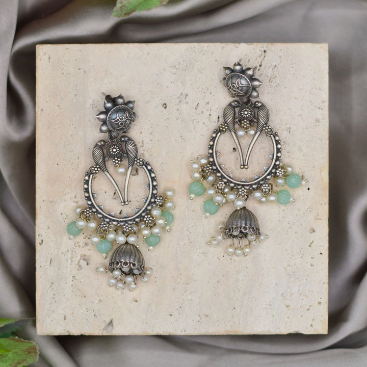 Exquisite jhumkas, showcasing diverse metallic finishes and adorned with luminous pearls. These beautifully designed pieces add a touch of antique charm and glamour, perfect for party wear or enhancing your unique style
