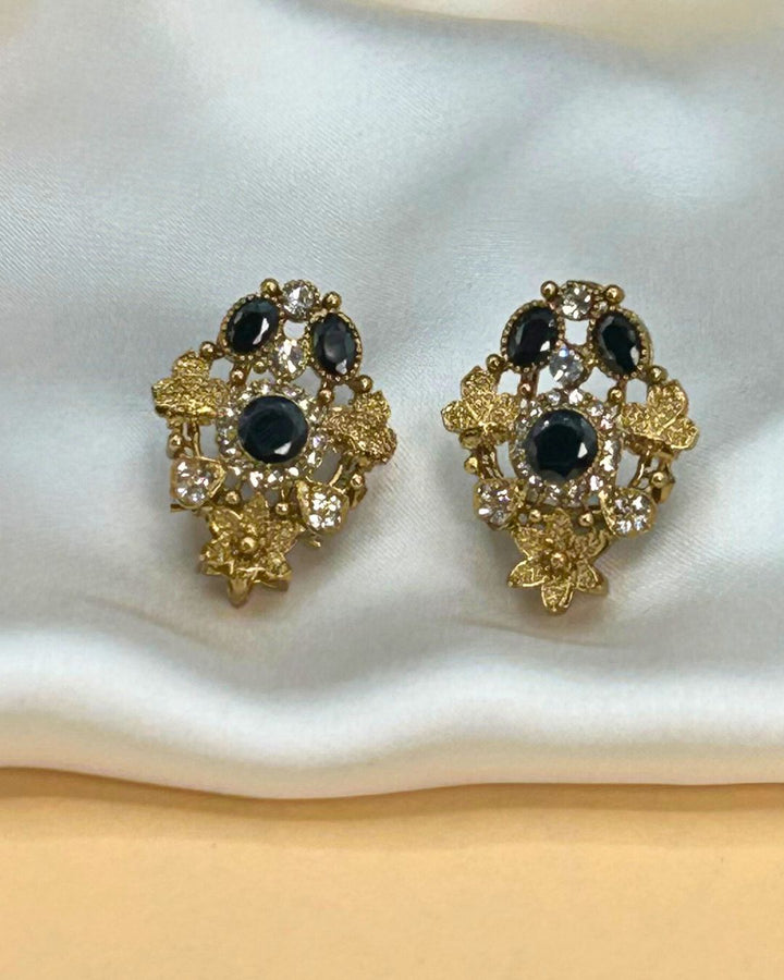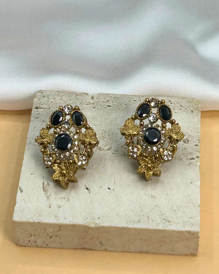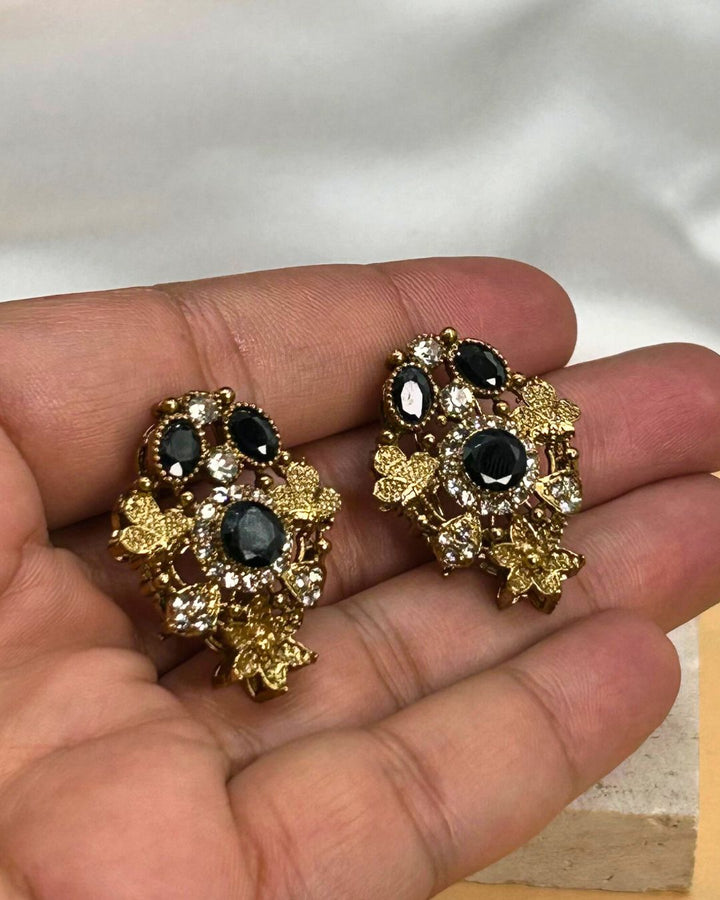 Indulge in luxury with these stunning dark green stone work clip-on earrings. Crafted with precision and elegance, this single piece accessory exudes a timeless charm. The intricate metal base adds a touch of sophistication to any outfit, making these earrings a must-have for the modern woman. Slip into elegance with Aurelia.Pk.