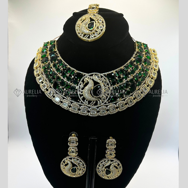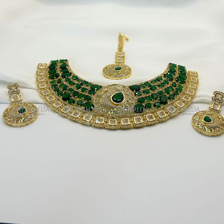 Feel like royalty with this gold-plated choker set. Beautiful Indian craftsmanship, shiny stones. Light & fancy, perfect for brides wanting an elegant, regal look.