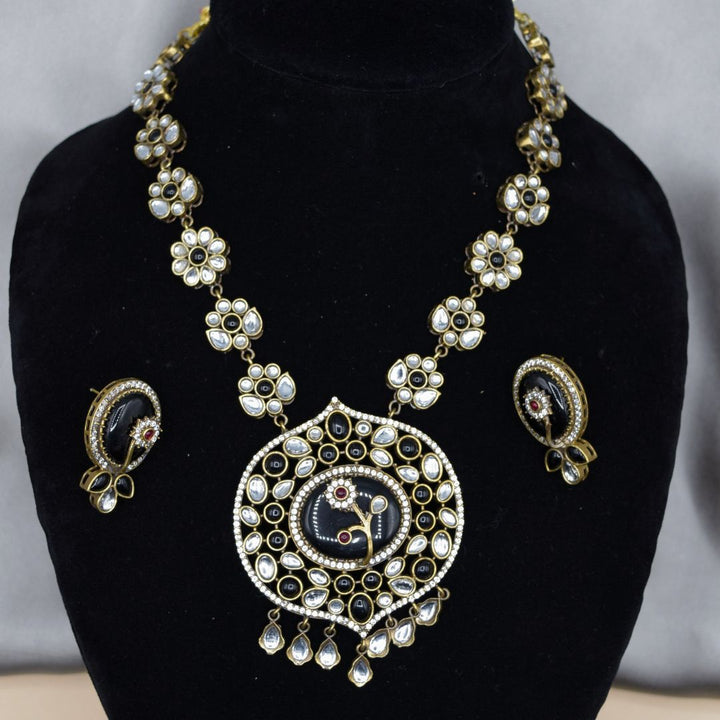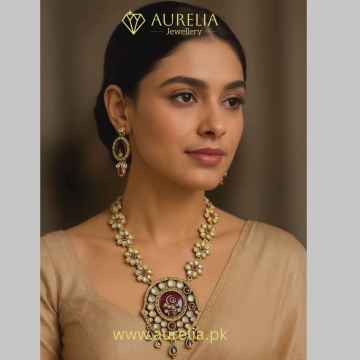 Add timeless elegance to your look with our beautiful Mala Set. This complete set features a long necklace with sparkling stones and matching earrings. Perfect for weddings, festive events, or any special occasion