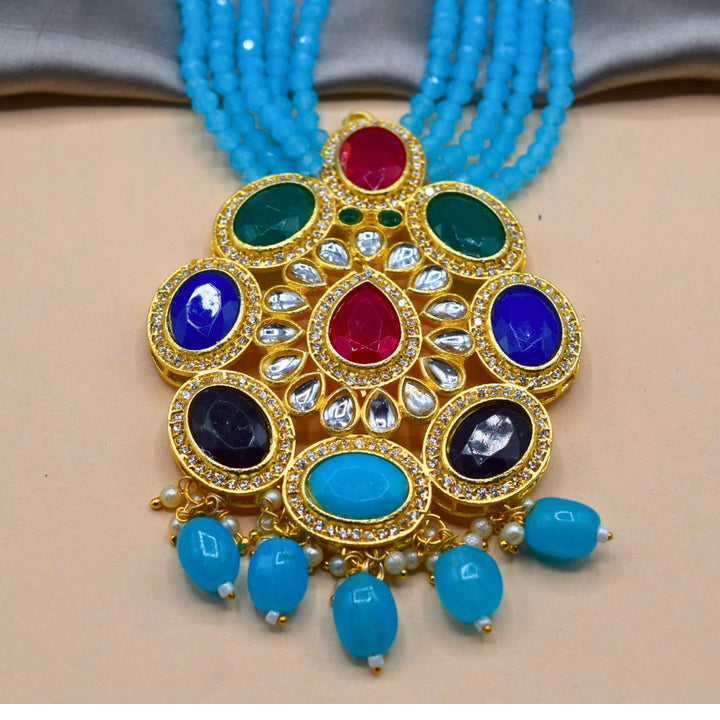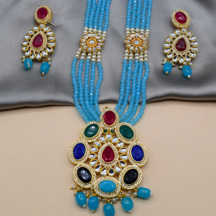 Discover our beautiful Beaded Mala Set! This complete set includes a long necklace with vibrant beads and sparkling colorful stones, plus matching earrings. Perfect for festive events, weddings, or adding a pop of color to your traditional outfit