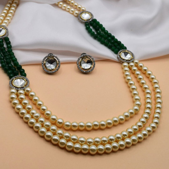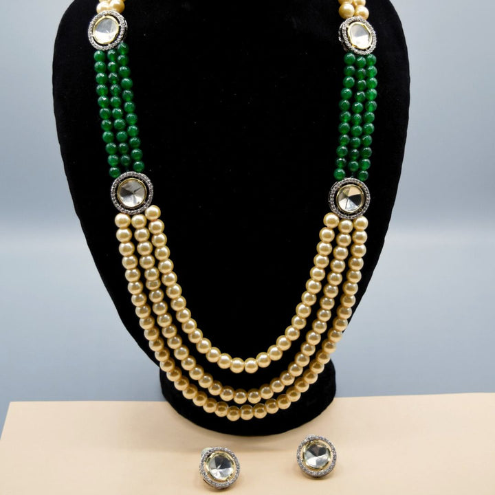 Add classic charm to your outfit with our beautiful Beaded Mala Set. This elegant set includes a multi-strand necklace with lovely pearls and beads, plus matching stud earrings. It features sparkling details for a decent, graceful look. Perfect for any special occasion