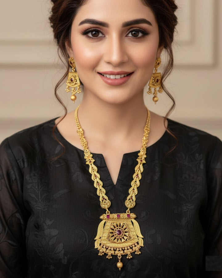 Add classic charm to your outfit with our beautiful Beaded Mala Set. This elegant set includes a multi-strand necklace with lovely pearls and beads, plus matching stud earrings. It features sparkling details for a decent, graceful look. Perfect for any special occasion