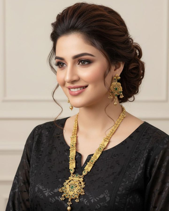 Add classic charm to your outfit with our beautiful Beaded Mala Set. This elegant set includes a multi-strand necklace with lovely pearls and beads, plus matching stud earrings. It features sparkling details for a decent, graceful look. Perfect for any special occasion