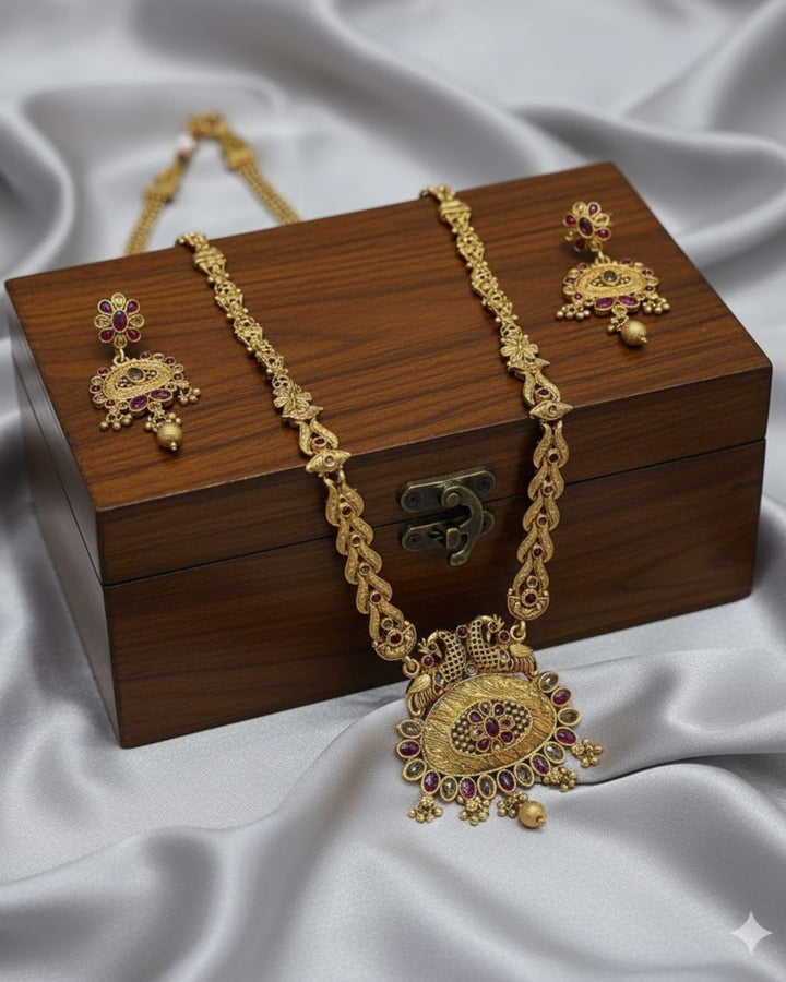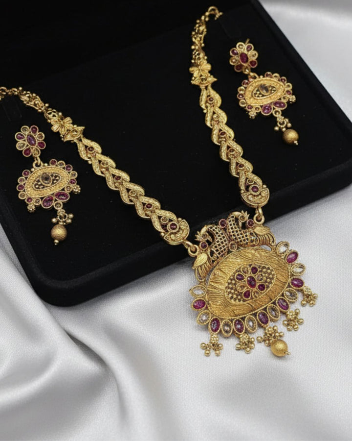 Add classic charm to your outfit with our beautiful Beaded Mala Set. This elegant set includes a multi-strand necklace with lovely pearls and beads, plus matching stud earrings. It features sparkling details for a decent, graceful look. Perfect for any special occasion