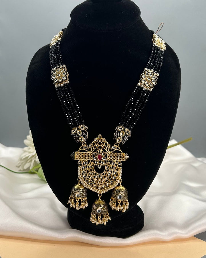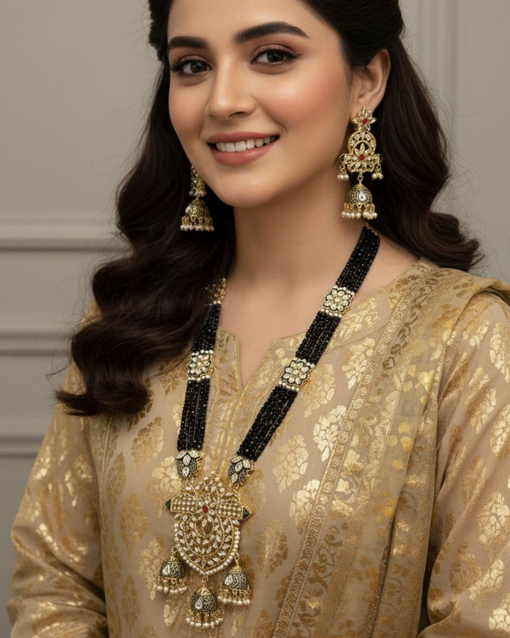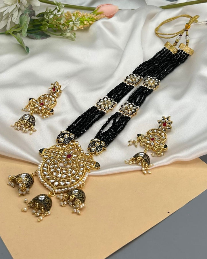 This stylish 2-piece jewelry set features intricate stone work on sleek black metal, adding a touch of sophistication to any outfit. The set includes a necklace and matching earrings, perfect for both casual and formal occasions. Elevate your look effortlessly with this elegant jewelry set from Aurelia.Pk.