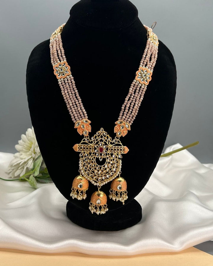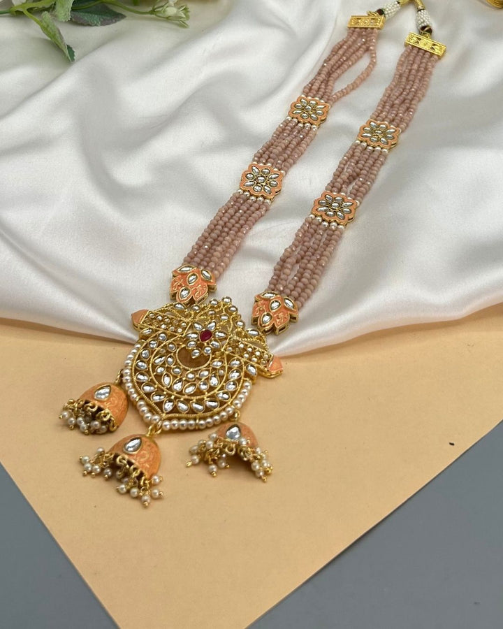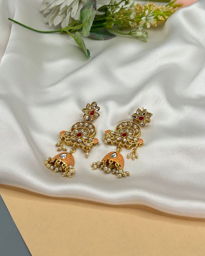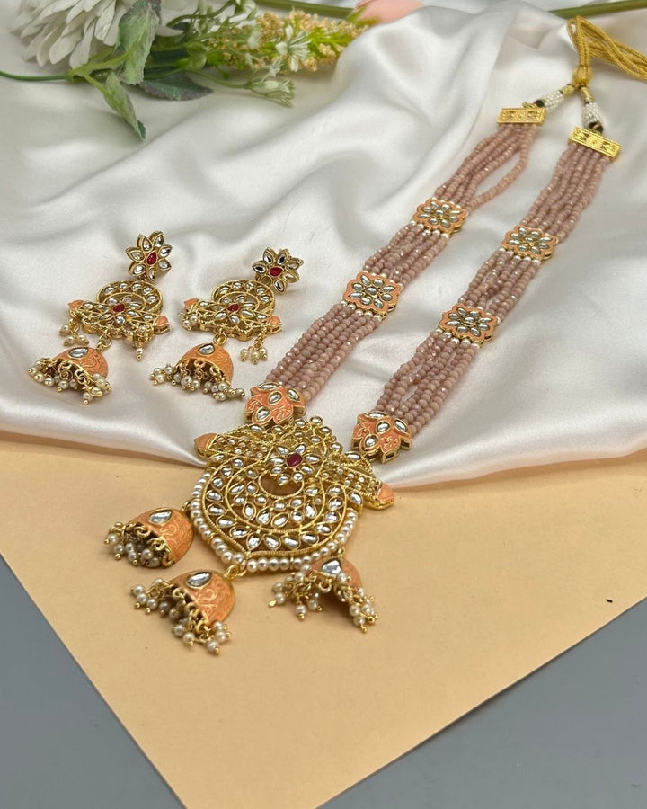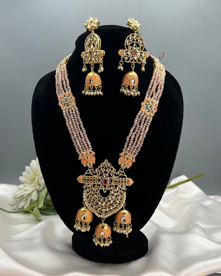 This exquisite jewelry set features two pieces of beautifully crafted metal accessories adorned with intricate stone work in a captivating orange hue. The set exudes a delicate yet stunning charm, perfect for adding a touch of elegance to any ensemble. Elevate your style with this timeless and elegant accessory set from Aurelia.Pk.