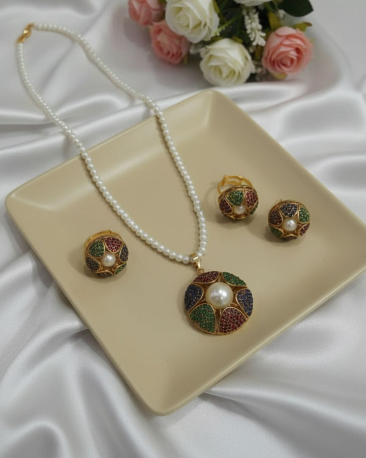 These exquisite pendant necklaces elevate any outfit effortlessly. Crafted from delicate snow-colored metal and adorned with intricate stone work, these pieces exude sophistication. The set of two offers a perfect balance of elegance and trendiness, making them a must-have for the fashion-forward woman.