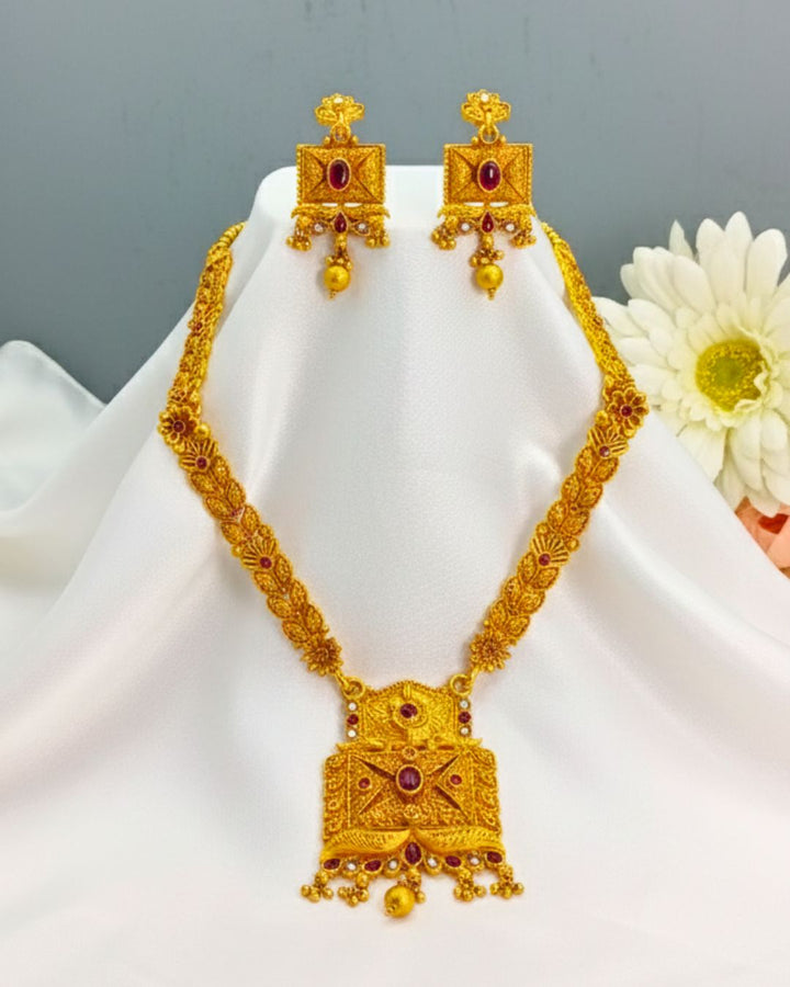 Add classic charm to your outfit with our beautiful Rajwari Ethnic Jewelry Set. This elegant set includes a multi-strand necklace with lovely pearls and beads, plus matching earrings. It features sparkling details for a decent, graceful look. Perfect for any special occasion