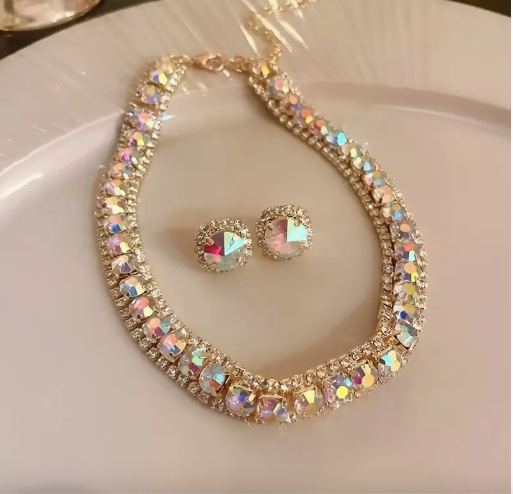 1 Set Elegant Ladies' Jewelry Ensemble, 18K Golden Plated Iron Necklace and 925 Silver Stud Earrings with Rhinestones, Versatile for Daily Wear and Parties, Perfect Gift for Valentine's Day.
