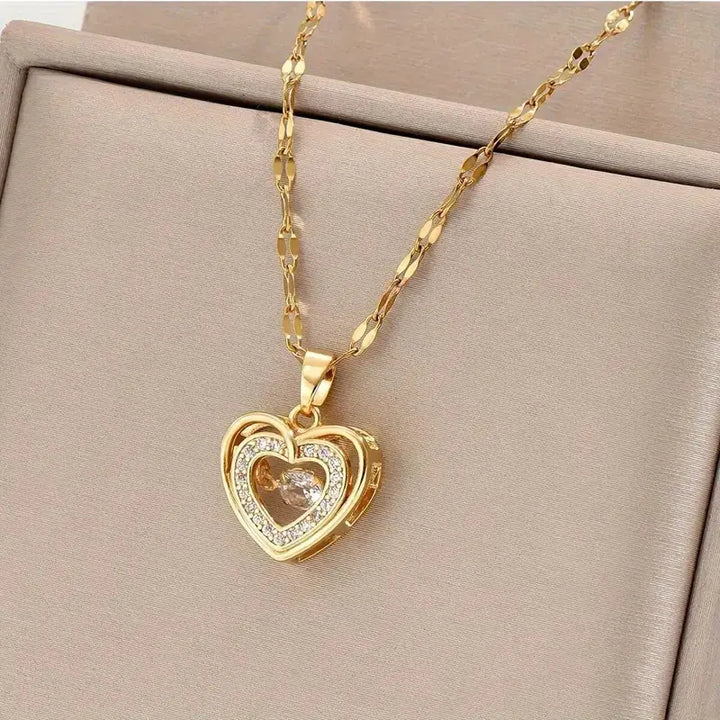Stainless Steel Heart Pendant Necklace with Cubic Synthetic Zirconia Elegant Minimalist Design Dainty Jewelry for Women