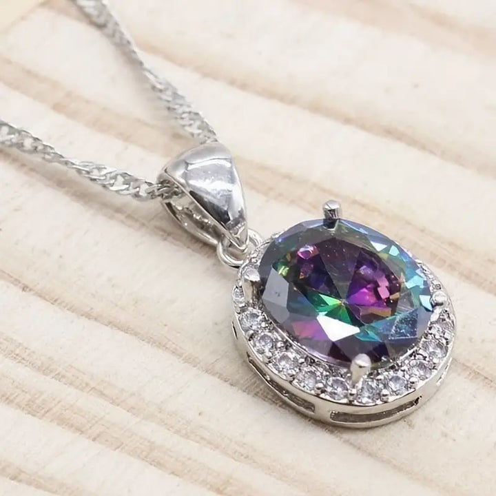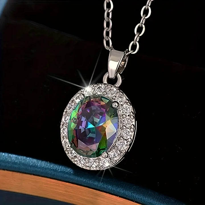 1pc Elegant Women'S Fashion Pendant Necklace with Oval Cut Colorful Synthetic Zirconia Stones - Versatile for Wedding, Party, Date Night, and Everyday Wear - Perfect Gift for Birthdays, Valentine'S Day, Mardi Gras, and More, Casual Jewelry | Elegant Pendant Necklace | Cubic Zirconia Pendant