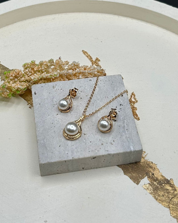 Delicate and elegant, these pearl white pendant necklaces by Aurelia.PK are a stunning addition to any outfit. Crafted with intricate stone work on metal, this pack of 2 necklaces exudes timeless beauty. The perfect combination of sophistication and charm, these necklaces are a must-have for every woman's jewelry collection.