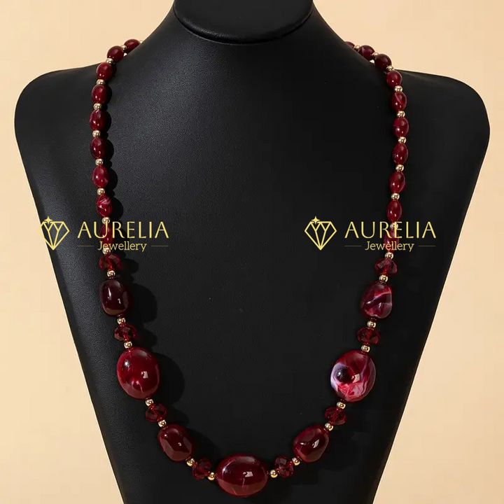 Simple Style Acrylic Bead Necklace Set - Non-Metallic Plating - Red Beaded Fashion Jewelry for Daily and Party Occasions - Versatile Accessory¬¨‚Äâ€
