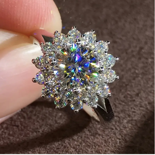 Elegant Women'S Engagement Ring with Sparkling Cubic Zirconia Flowers - Luxurious Halo Design, Perfect for Weddings, Anniversaries, and Special Occasions, Wedding Ring|Floral Ring Design|Cubic Zirconia Ring