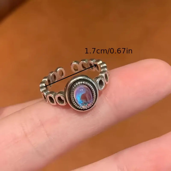 Vintage Silvery Crown Men's Ring, Engraved Eagle Print Red Synthetic Gemstones Ring, Punk Party Jewelry