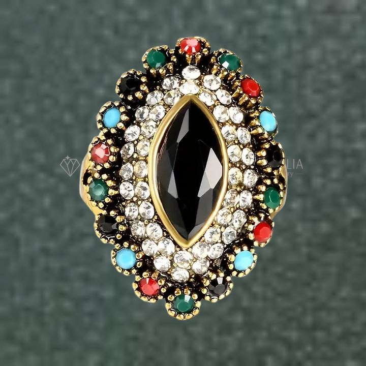 Vintage Faux Gemstone Ring with Sparkling Accents - Elegant French-Inspired Design, Perfect for Parties & Gifts, Valentine'S Day Jewelry|Vintage Bohemian Style|Artificial Crystal Rin