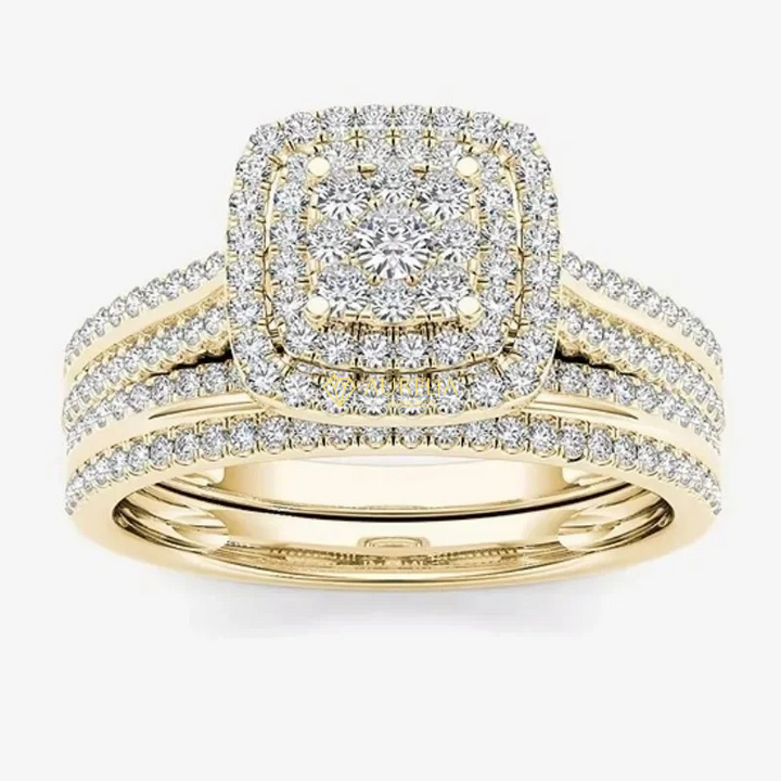 Delicate Gold Color Square Geometry Ring for Women Luxury Metal Inlaid White Stones Ring