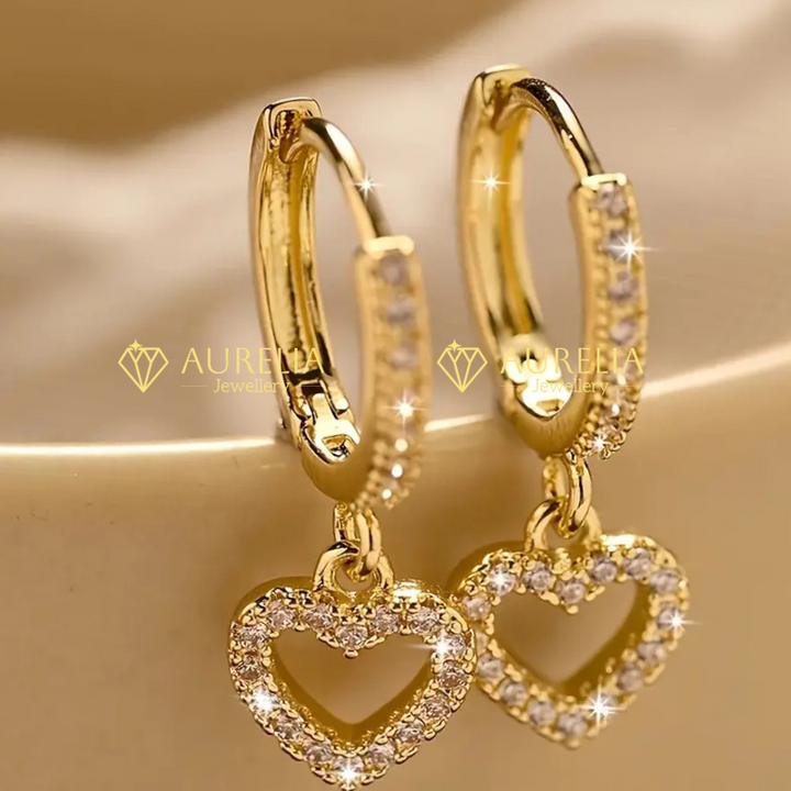 Hoop Earrings with Heart Drop Pendant, Synthetic 3A Zirconia, Simple Sexy Style, No Power Required, Ideal for Daily Wear and Gift-Giving