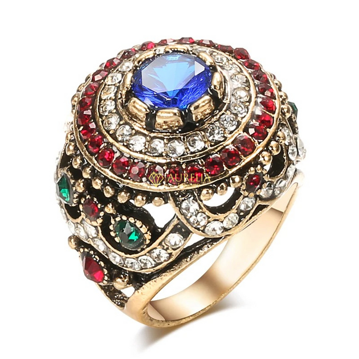 Luxury Crystal Rings For Women Turkey Jewelry Ancient Gold Color Oval Blue Resin Ring Party Gift
