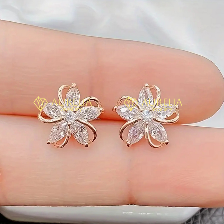 Cubic Zirconia Flower Stud Earrings - Vintage-Inspired, Stainless Steel Posts, Ideal for Daily Wear or as a Gift for Women and Sisters, Quirky Earrings