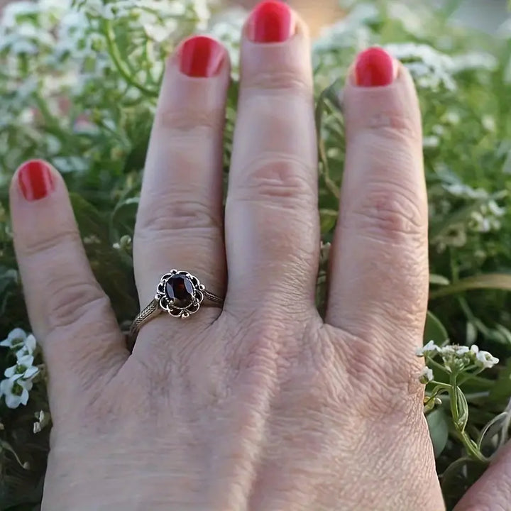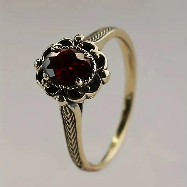 Elegant Promise Ring with Scarlet Oval Zirconia - Luxurious Copper Band, Perfect for Weddings & Parties, Ideal Anniversary or Birthday Gift, Female Party Accessories