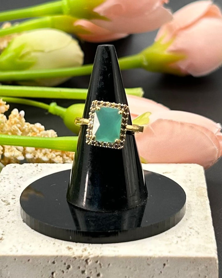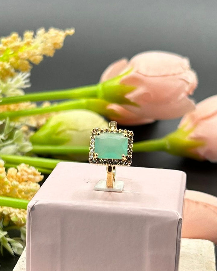 This statement-worthy engagement ring in emerald green exudes elegance and charm. Crafted from high-quality metal, this single piece boasts a timeless design that captures attention. Perfect for the modern woman looking to add a pop of color to her ensemble. Brand: Aurelia.Pk.